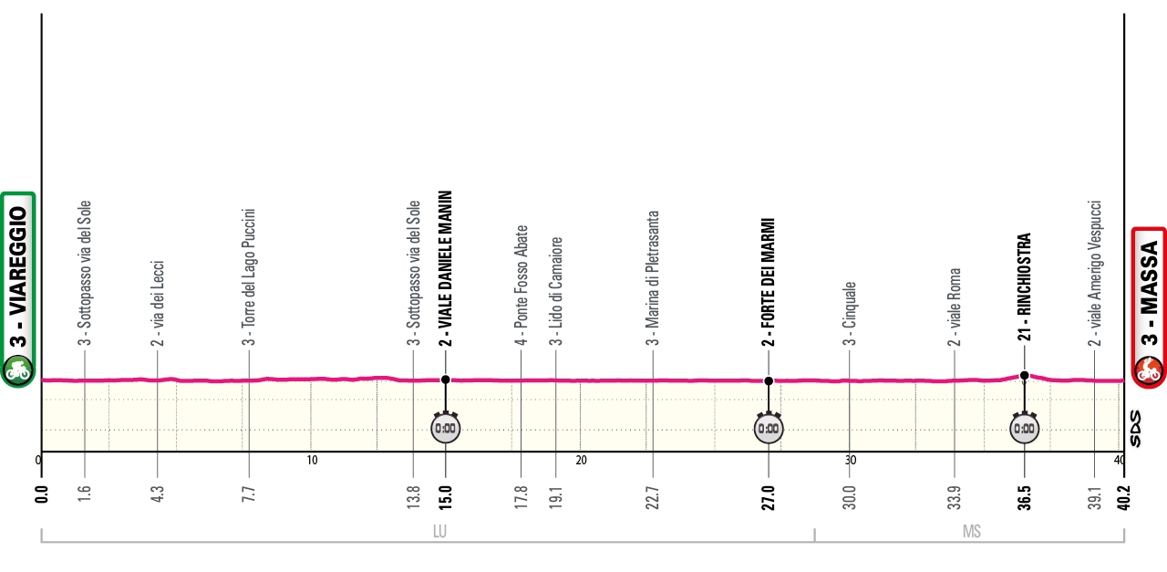 perfil plano que está destinada a los sprinters (los cuales gozaran de