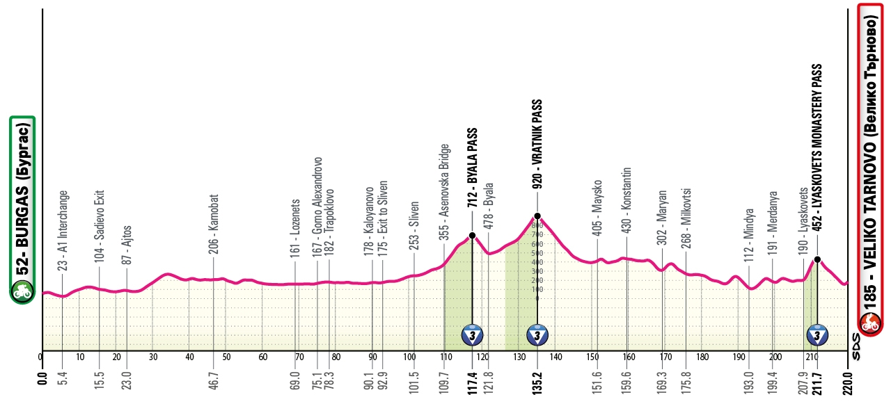 ETAPA 3 (domingo 10 de mayo de 2026): La tercera etapa del Giro, y última del periplo búlgaro, comenzará en la localidad natal del mítico Hristo Stoichkov (off-topic futbolero y culé, ye lo que hay) y llegará a la capital del país tras 174 kilómetros. Se adivina nueva llegada al sprint.