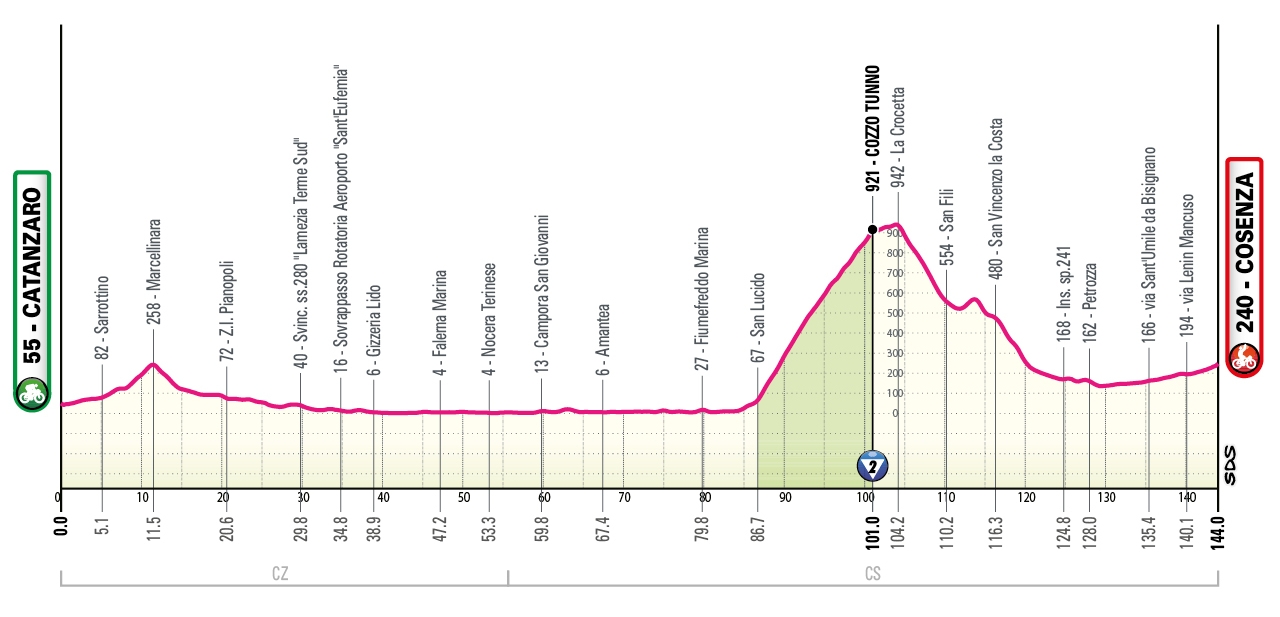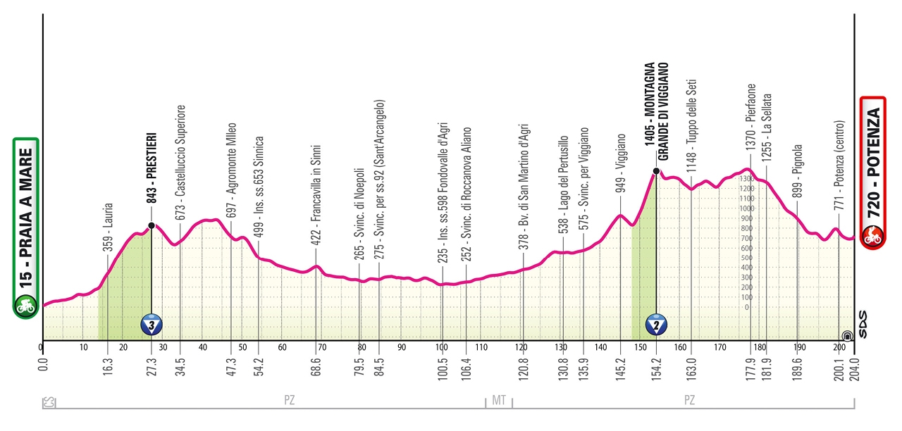 Potenza, con 204 kilómetros y 3800 metros de desnivel, con el duro