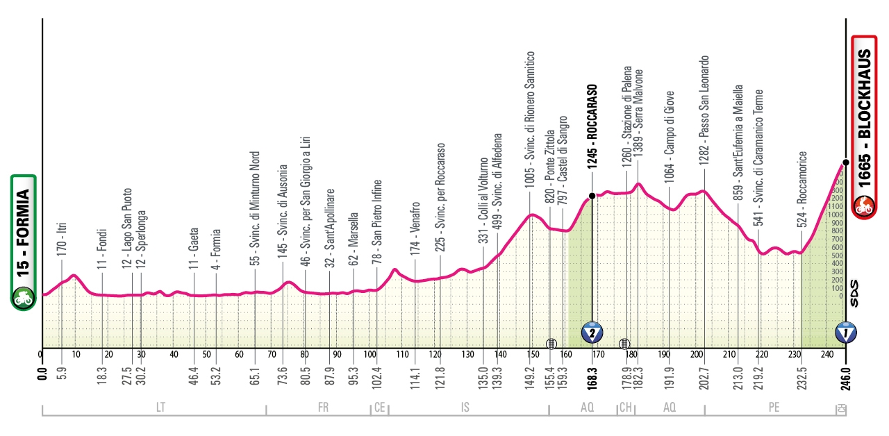 desnivel, con la dura llegada a Piani di Pezze (5 kilómetros al 9%),