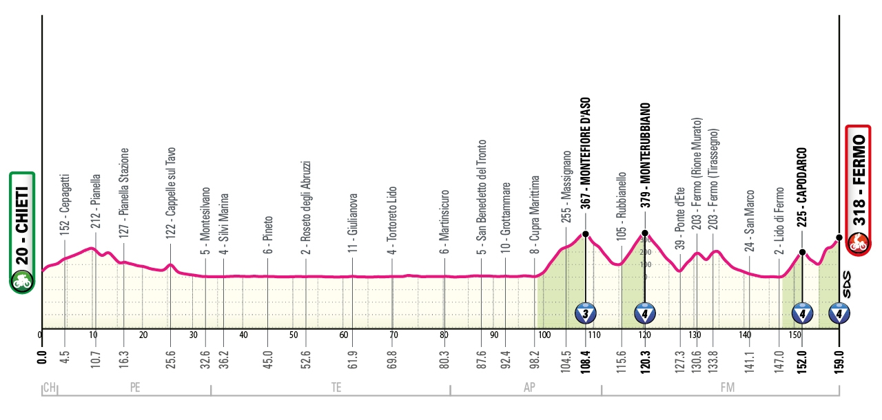 ETAPA 11 (miércoles 20 de mayo de 2026): Tras la crono se viene esta etapa de media montaña, con tres ascensiones en la segunda mitad del recorrido.