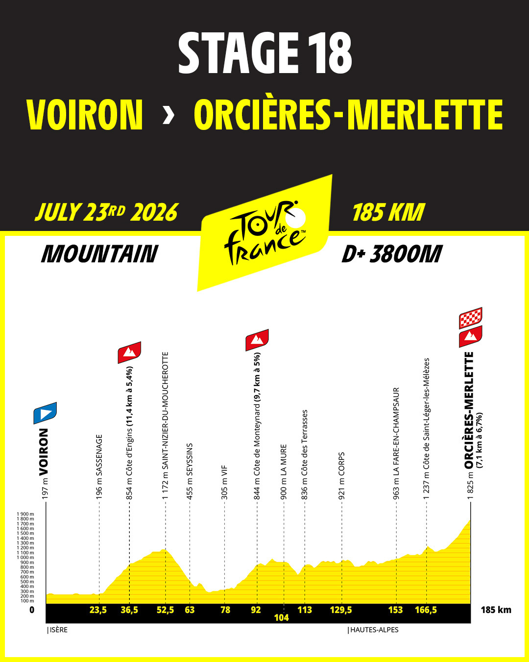 | 18 | Voiron-Orcieres Merlette | 185 kms | 3800 m | Montaña | 23/07/26 |
