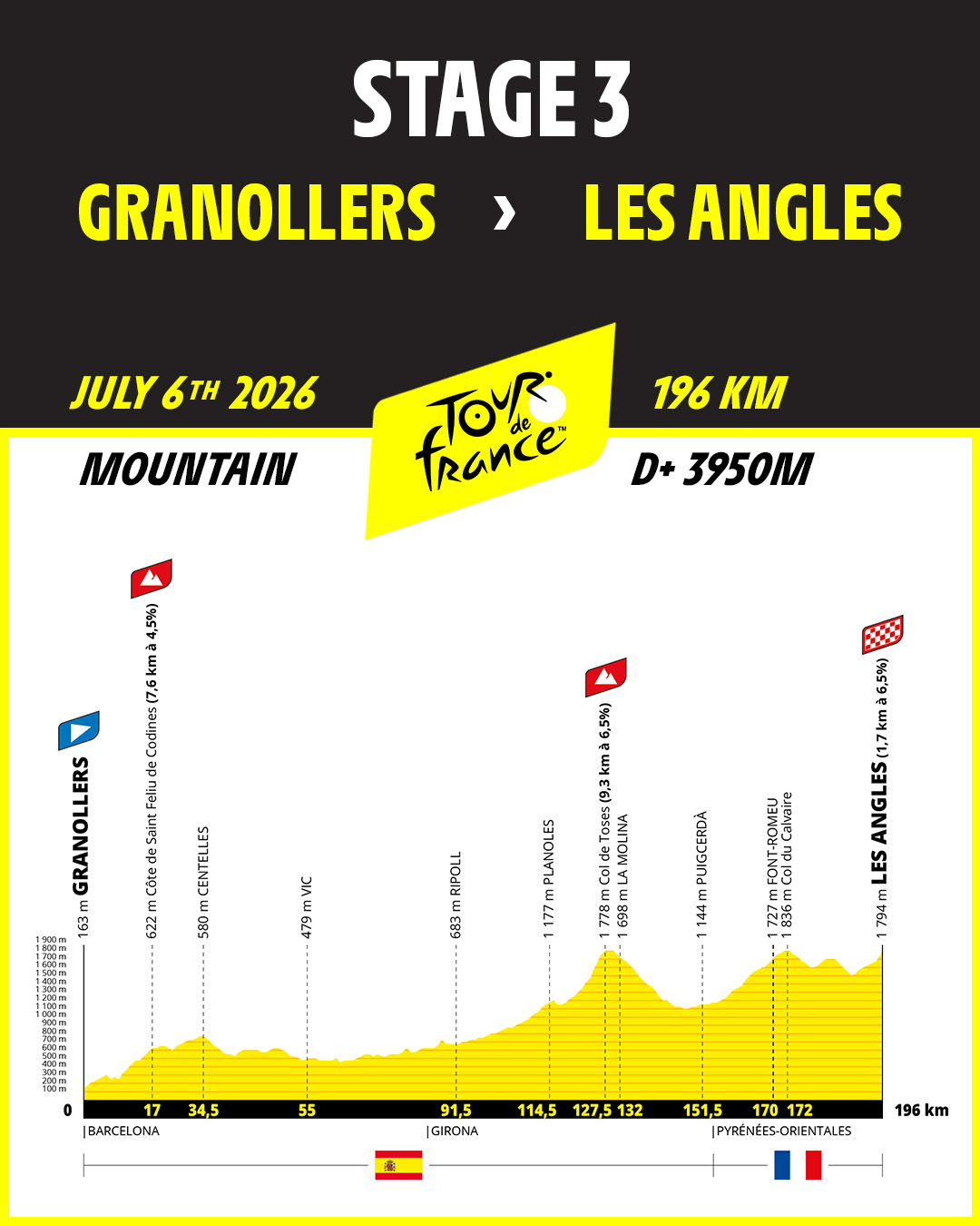 | 3 | Granollers-Les Angles | 196 kms | 3950 m | Montaña | 06/07/26 |