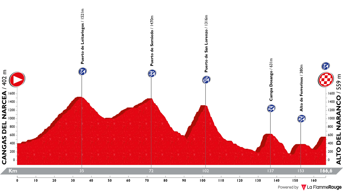 Asturias con otra salida de etapa, por supuesto. Un diseño que alcanza,