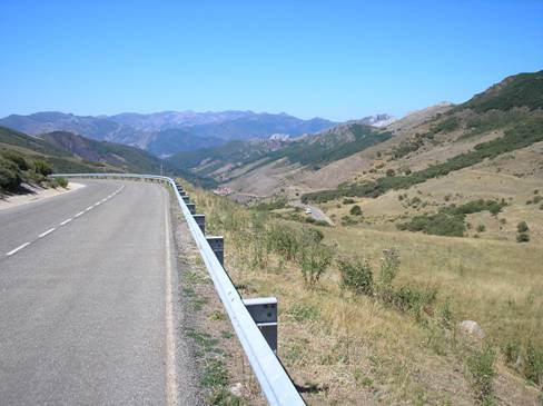 El inicio de la subida, donde dejamos atrás la carretera que bordea el embalse de Barrios de Luna.