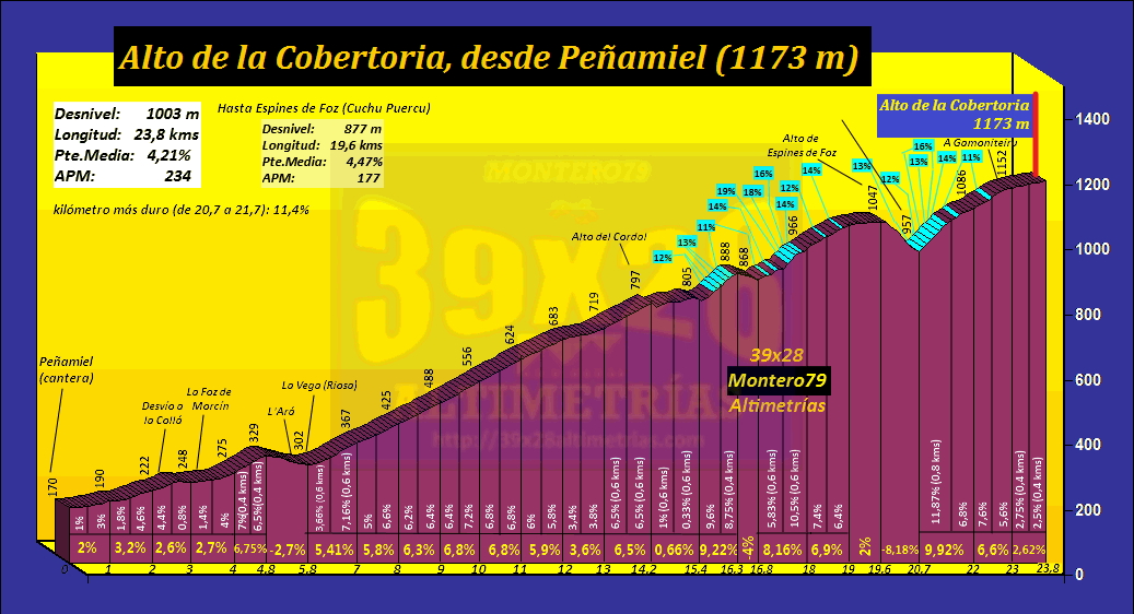 Ascendíamos por la carretera del Cordal, rumbo a la Cobertoria cuando comenté a mi colega de rutas, Javi, algo muy curioso: llevamos 7-8 años con esto y vamos a poner otra vertiente más de la Cobertoria. Llevo pregonando con este puerto un montón de tiempo, me han llamado cansino, repetitivo y obseso, pero da igual, todo da igual cuando haces cumbre en la Cobertoria. Todos los caminos, los míos, al menos, acaban ahí arriba, en la cima de la Cobertoria, pero otros muchos conducen ahí a esa cima desde la que dominas Peña Rueda, desde la que ves Pola de Lena, y desde la que convierto a mi bicicleta en una reina por un momento. En la Cobertoria, en realidad, comienzan y acaban todos los caminos. Mis rutas preferidas, mis etapas favoritas. Ahora, que ya parece que se ha ido todo, que todo el mundo lo ha visto, pero que aún nadie ha sido capaz de "verlo", de ponerlo a la altura que se merece, volvemos con otro viraje más a la historia de amor incondicional a este puerto en esta web. Lo siento por los que esperen encontrarse con una descripción sin más de este puerto. Si queréis sólo números tenéis otras webs que os darán incluso más, pero aquí escribo yo y os digo lo que me parece esta subida (y todas las otras). Si a alguien no le gusta, en un botón del teclado del ordenador o de su móvil tiene la salida...