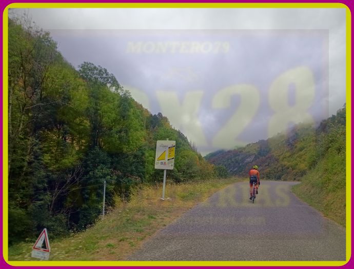 Me desplazo hasta Escot, punto de arranque de uno de los clásicos pirenaicos, Marie Blanque, que tampoco lo había subido nunca. Así, en frío (mejor temperatura de inicio que la del día anterior) me adentro en la carretera, muy rectilínea, que sube hasta este famoso "muro", pasando las enormes rampas de la segunda mitad.