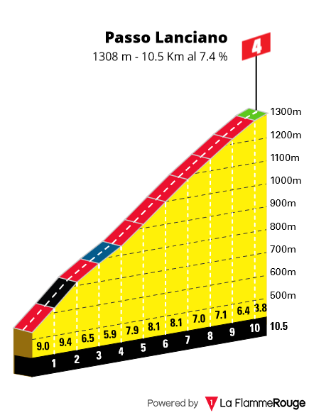 | 9 | Isernia-Blockhaus | 191 kms | 5000 m | 15/05/22 | línea | Passo Lanciano y Blockhaus (1), Rionero Sannticco, Roccaraso (2), Valico del Macerone (3) |