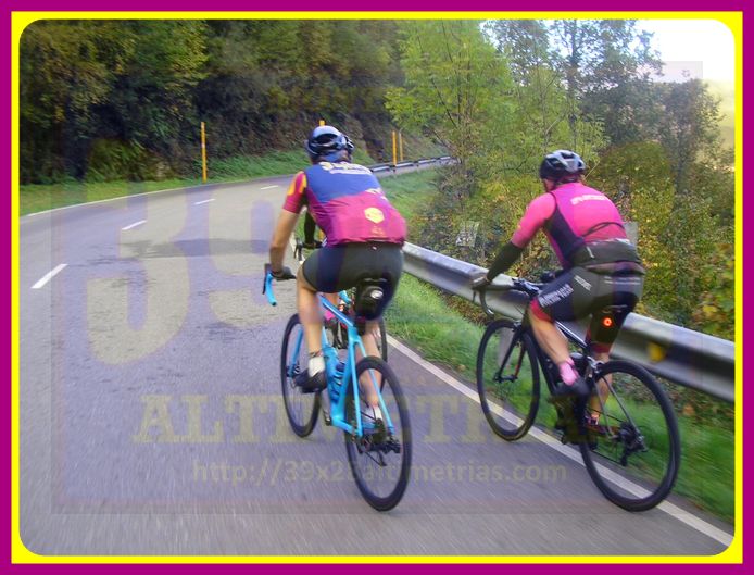 A estas horas de la subida voy ya con Manolín y el resto va llegando, como en esas etapas de montaña del Giro (antiguas) a la cima del puerto de Ancares, que se ve lejano y cercano a la vez.