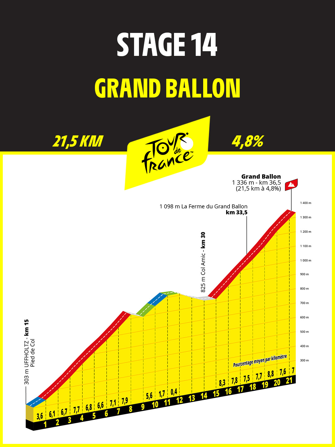 ETAPA 13: El Tour se interna en Los Vosgos con esta llegada a Belfort previo paso por el Ballon D'Alsace a poco de meta (Atención, la etapa más larga del Tour, con 205 kilómetros).
