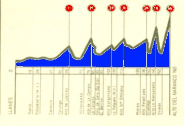 ETAPA 6: Etapa final en formato de diente de sierra y en donde se ascienden Lastres, La Campa, la Gargantada, Santo Emiliano, Padrún (la Rebollada), la Manzaneda, antes de la subida final al alto del Naranco.