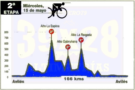 ETAPA 2: La segunda etapa concentra mucha dureza en su parte intermedia y en donde se suben La Espina, la Cabruñana y la Reigada antes de acabar en Avilés.
