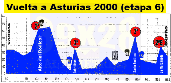 ETAPA 6: Etapa rompepiernas para finalizar la Vuelta y en donde se ascienden los puertos del Rodical, la Cabruñana, Santo Emiliano y La Manzaneda.