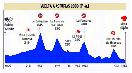 Vuelta a Asturias de 2008 cuenta con cinco etapas (en una de ellas hay