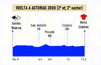 ETAPA 2: La segunda etapa cuenta con dos sectores (uno en línea casi llano y otro en el formato de crono individual con salida en Nueva y llegada a Llanes).