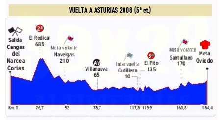 ETAPA 5: Jornada de perfil quebrado, atravesando El Rodical y el Pito, llegada a Oviedo tras 184 kilómetros.