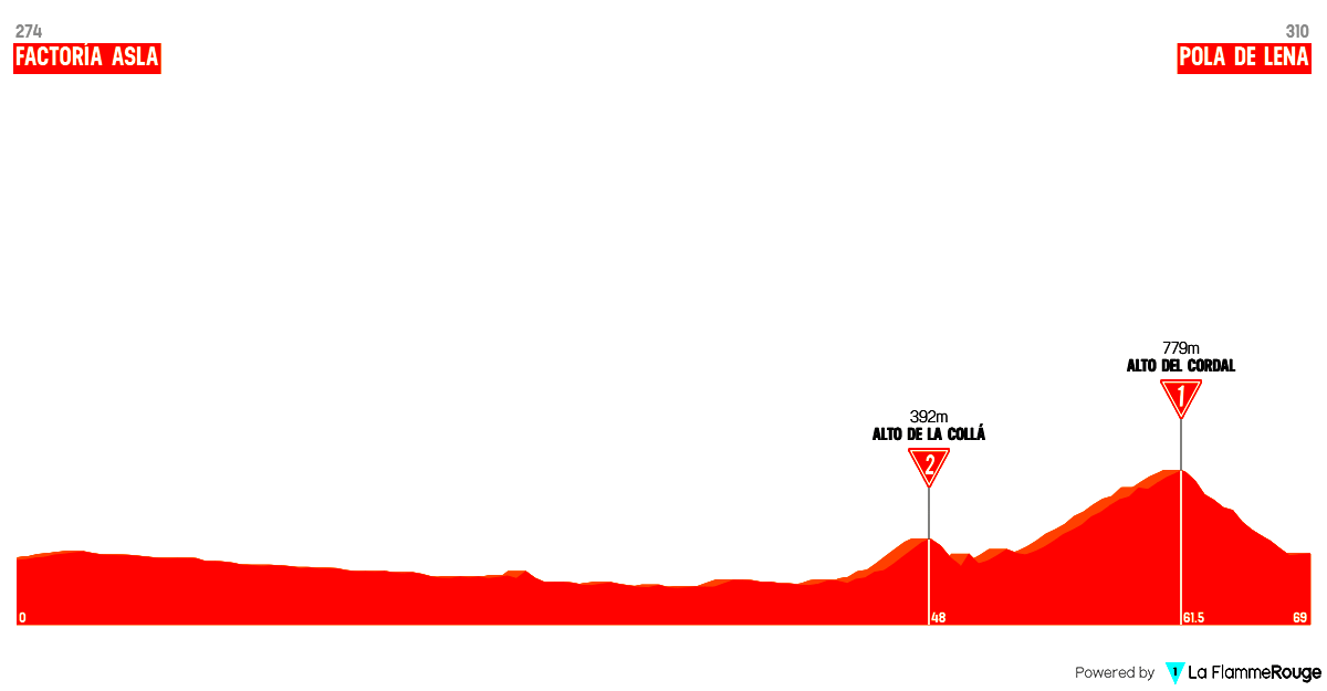 Hasta cuatro vueltas al circuito Figaredo-Mieres-Ablaña, yendo después hacia el alto de San Tirso (3ª) y Santo Emiliano (2ª), en lo que es la etapa más larga de esta edición (113 kms) |